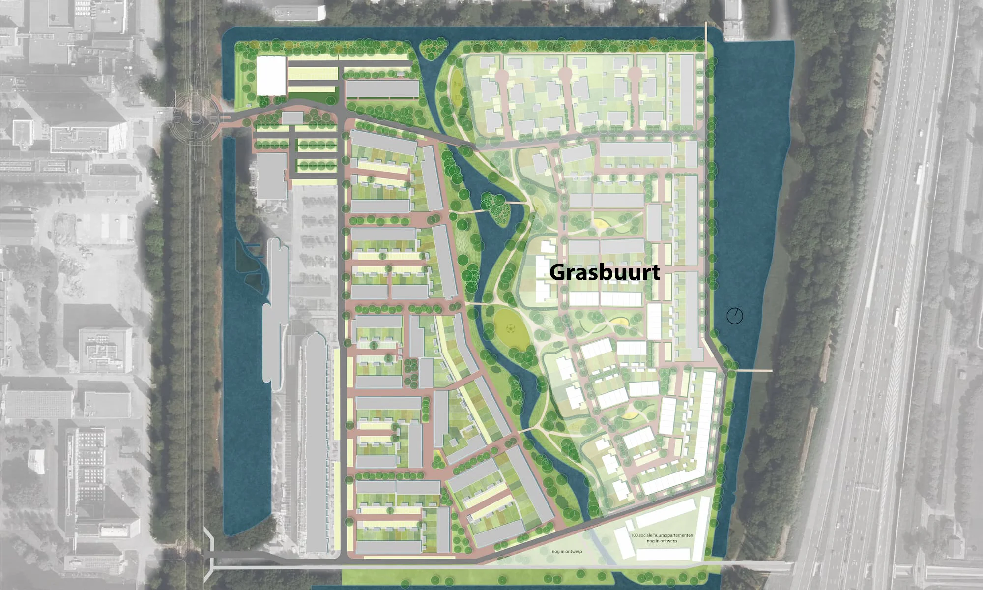 Grasbuurt krijgt een groen karakter. De korte en lange rijtjes met huizen slingeren door de buurt. De woningen grenzen aan het stadspark, staan aan statige groene straten of hebben uitzicht op het water voor de deur. Parkeren kun je achter en naast je woning, of op eigen terrein. Zo oogt de buurt autoluw. De woningen hebben mooie metselwerk details in de gevels en herkenbare voordeuren. Je woont hier op ruime kavels en aan rustige straten met groene hagen, veel gras en bijzondere bomen. Zo ervaar je écht het gevoel van privacy.